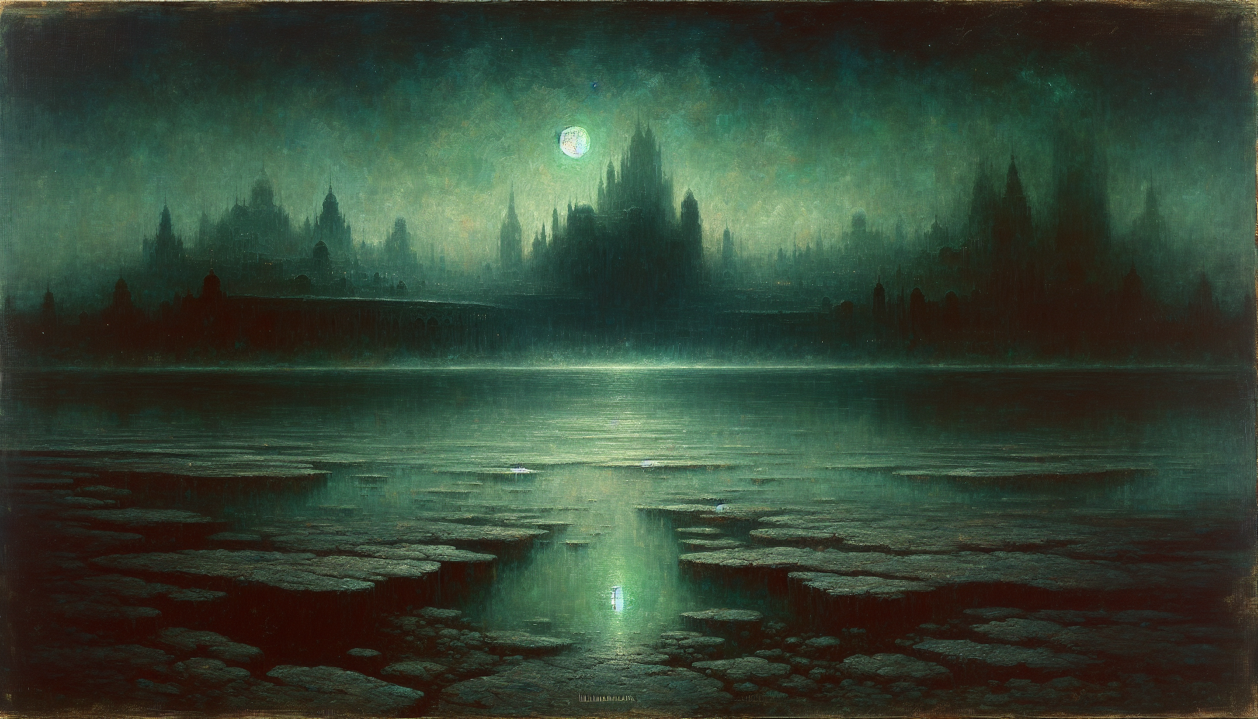 La nuit est immobile au-dessus du lac sans nom, et nul ne se souvient vraiment du lieu où se dressait Sarnath, car même les cartes ont oublié ses contours. Pourtant, certains anciens manuscrits murmurent qu’une cité fabuleuse s’éleva jadis sur ses rives, bâtie sur la ruine d’un peuple plus ancien, aux dieux innommables. Lorsque le vent se lève, disent les conteurs, on pourrait presque entendre des cloches qui sonnent sous les eaux, écho d’un orgueil trop grand pour la fragile mémoire des hommes. C’est là que commence l’histoire de Sarnath, cité triomphante, puis effacée comme un rêve profané. Et à l’ombre de ce silence, la question demeure : qu’a réellement vu Sarnath, pour mériter pareille malédiction ?